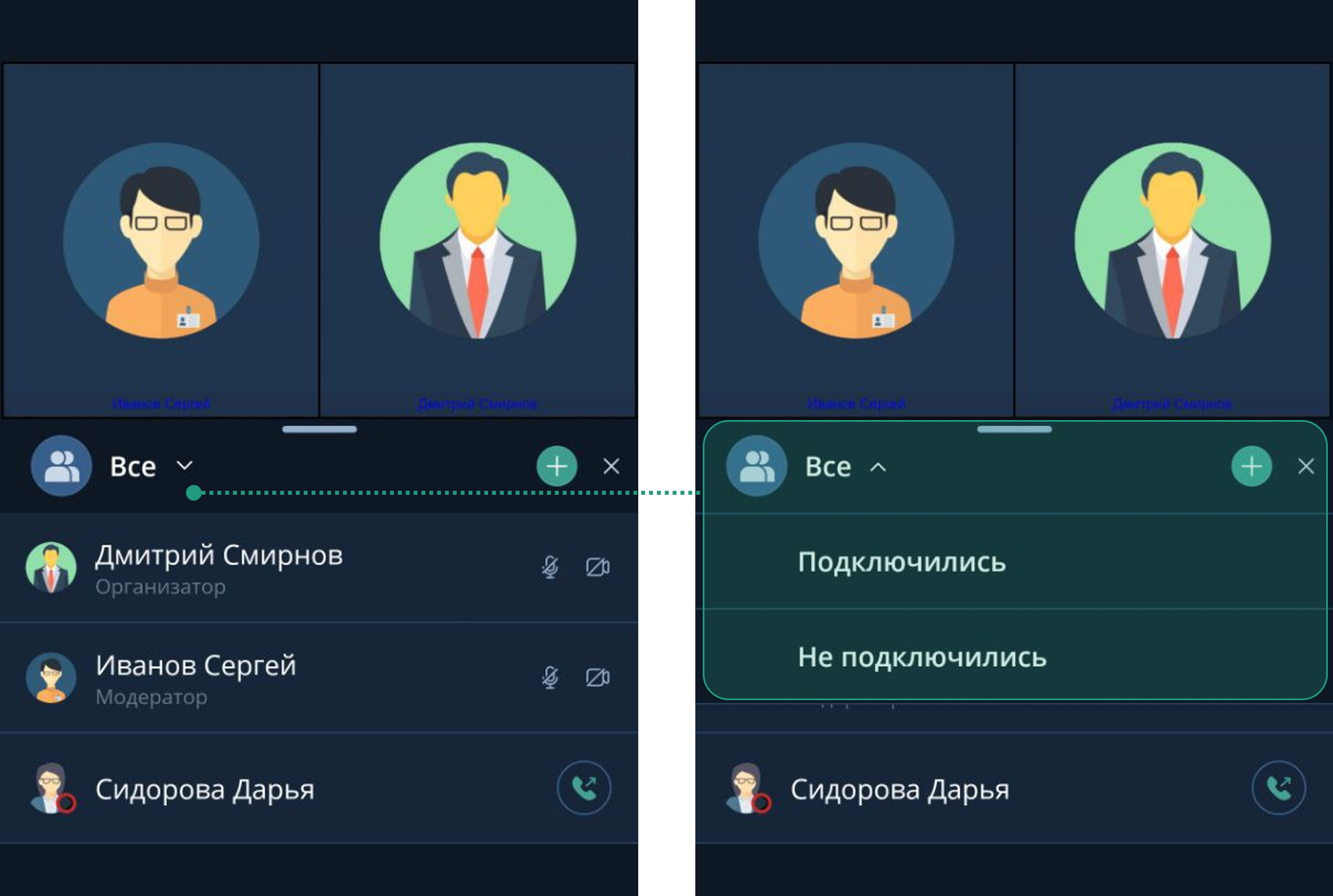 Организатор и Модератор мероприятия, а также рядовой участник (если предоставлены права на эту функцию — предоставить права можно только в IVA WEB и IVA Connect Desktop) могут повторно вызывать приглашённых участников в мероприятие.