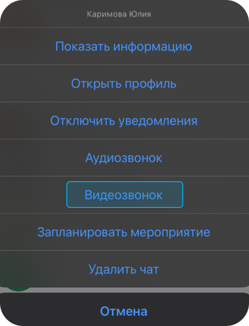 Видеозвонок — звонок в групповом или персональном чате, при котором пользователи слышат и видят друг друга