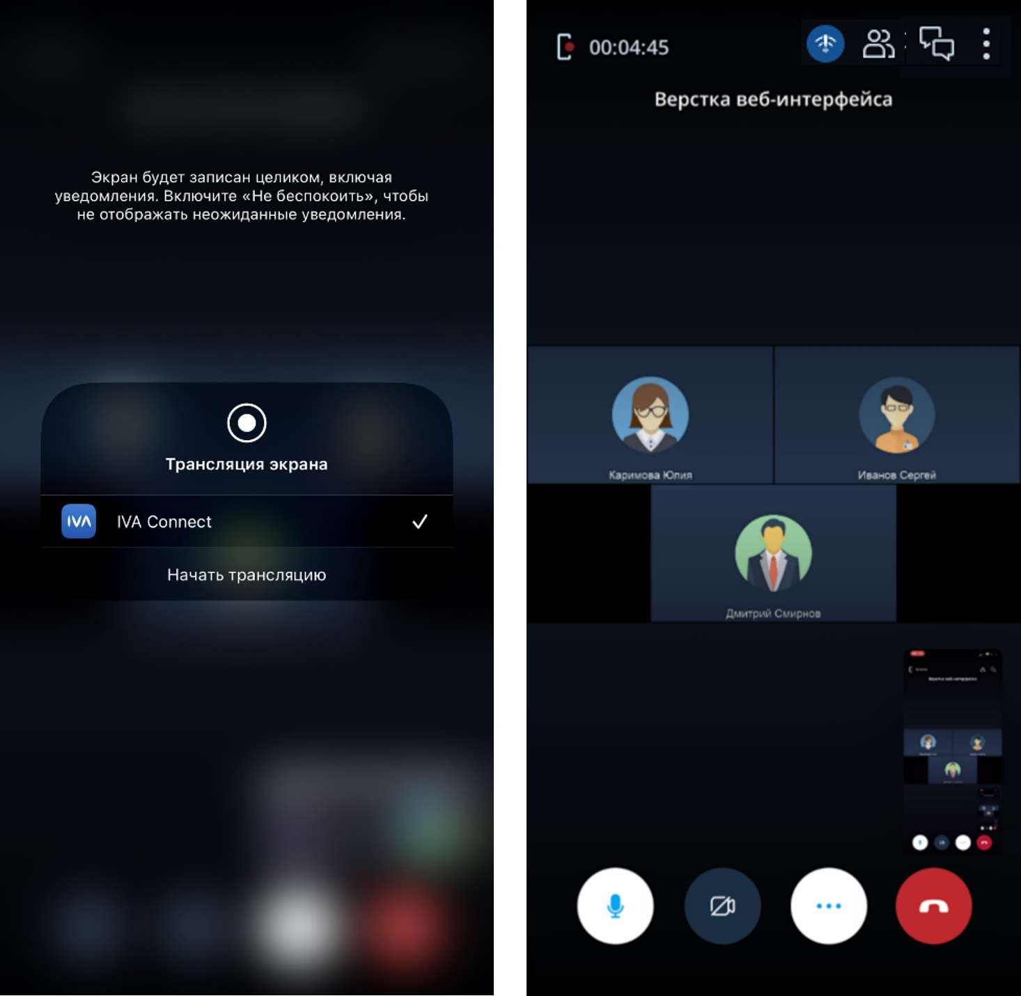 | Организатор / Модератор могут ограничить возможность демонстрации экрана (настройка доступна только в IVA WEB и IVA Connect Desktop) |