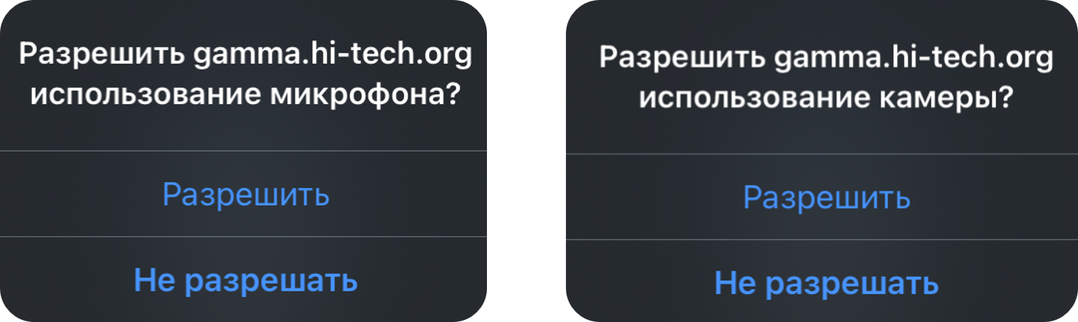 При первом входе приложению IVA Connect необходимо разрешить доступ к микрофону и камере