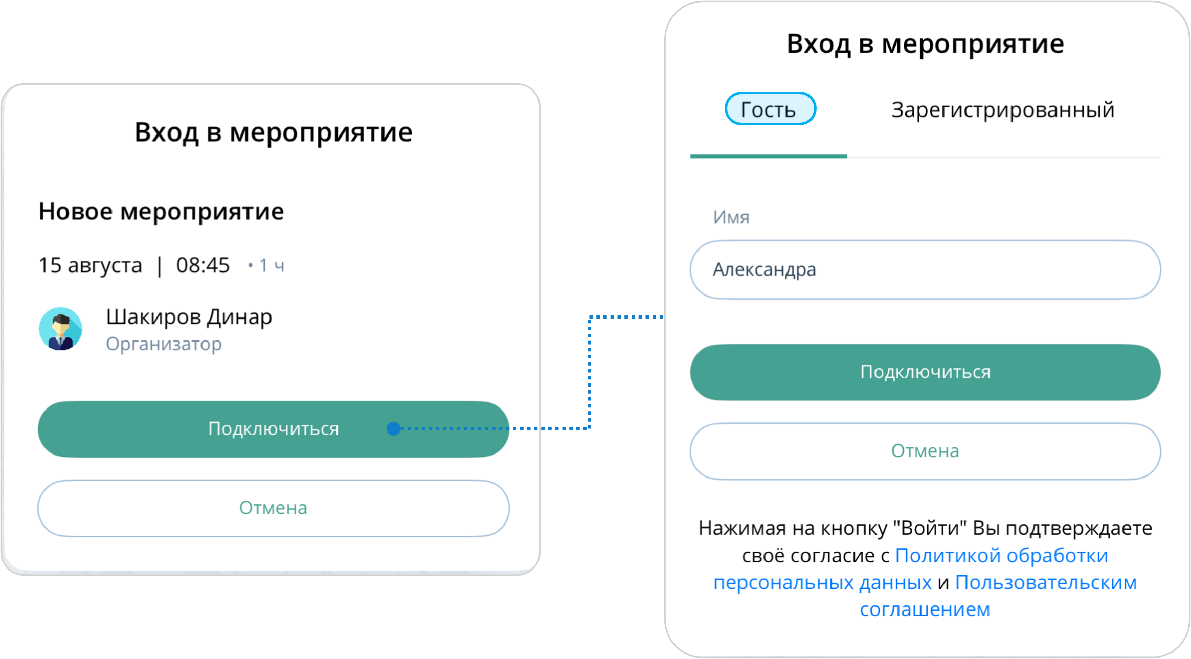 Подключение к мероприятию без авторизации