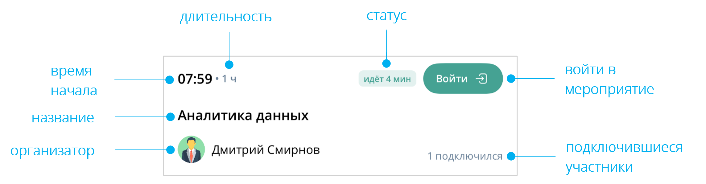 → Выбрать мероприятие в Списке мероприятий → Нажать на Карточку мероприятия → О мероприятии