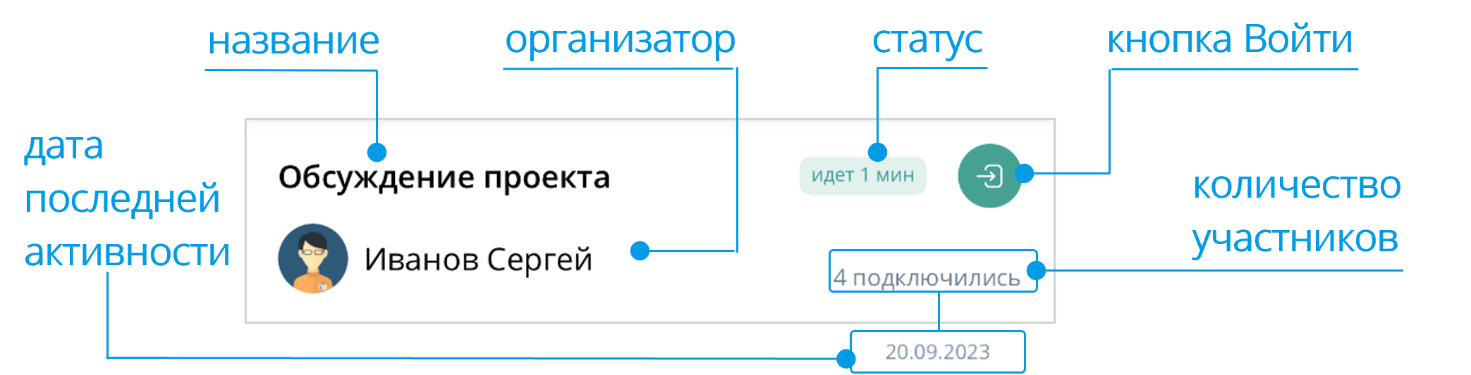 Карточка комнаты отображает краткую информацию о мероприятии в комнате