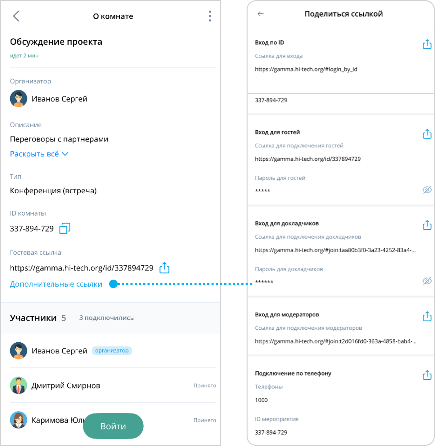 ID мероприятия, Гостевая ссылка видны только Организатору и Модератору мероприятия
