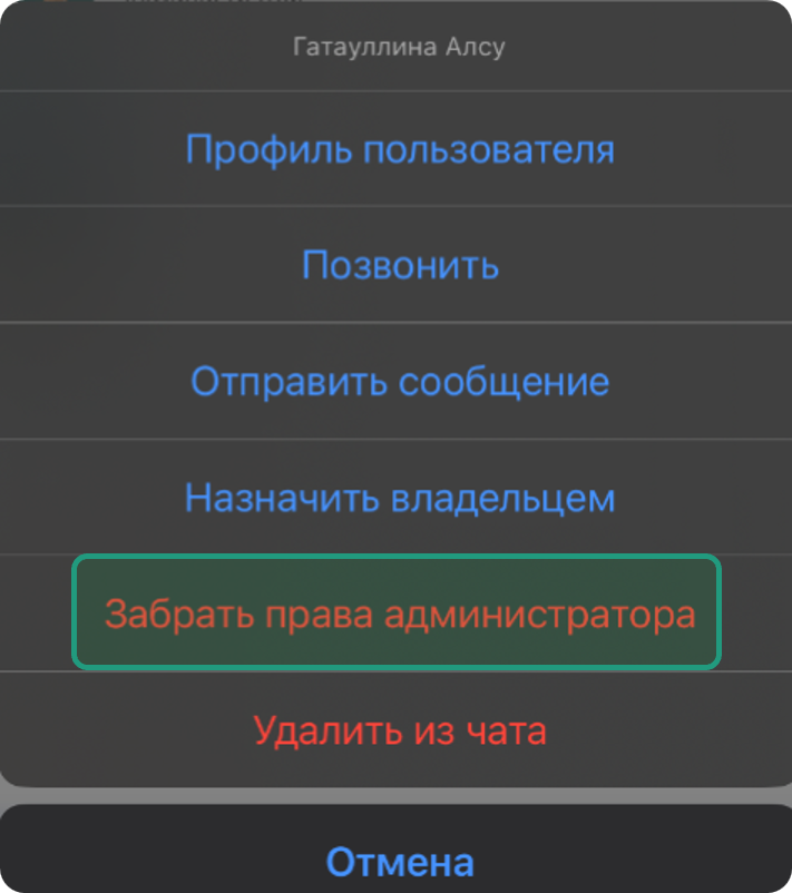 Лишение прав Администратора чата