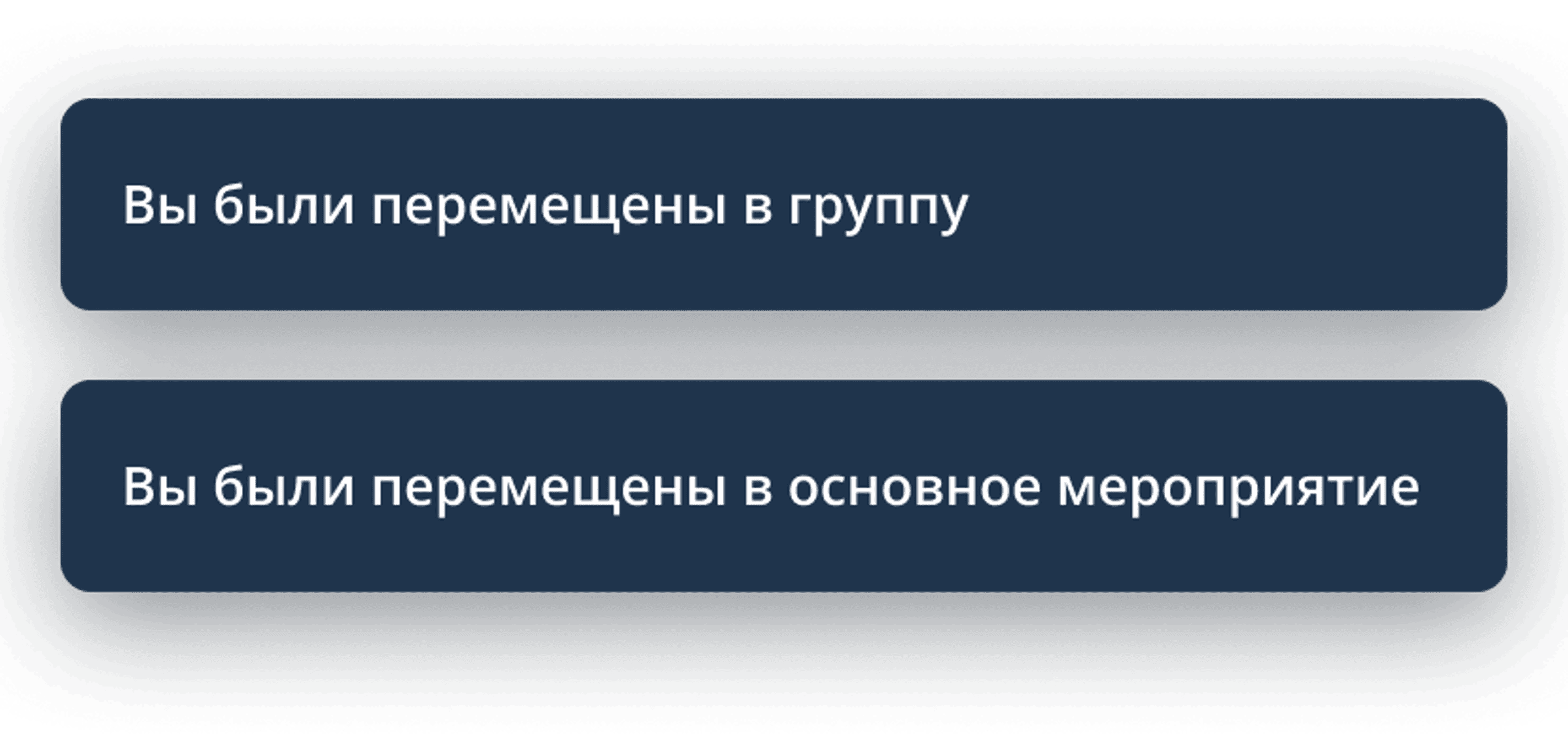 При переводе участника в группу у него появляется соответствующее сообщение.