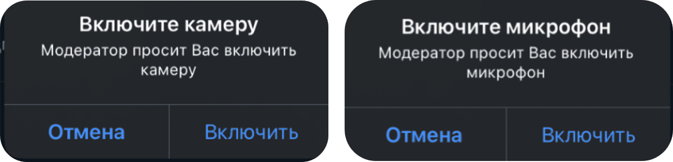 | Для удаленного управления трансляцией аудио / видео участников мероприятия Организатору / Модератору требуется соответствующее подтверждение от участников |
