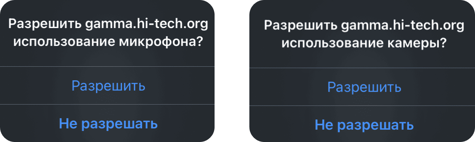 При первом входе приложению IVA Connect необходимо разрешить доступ к микрофону и камере