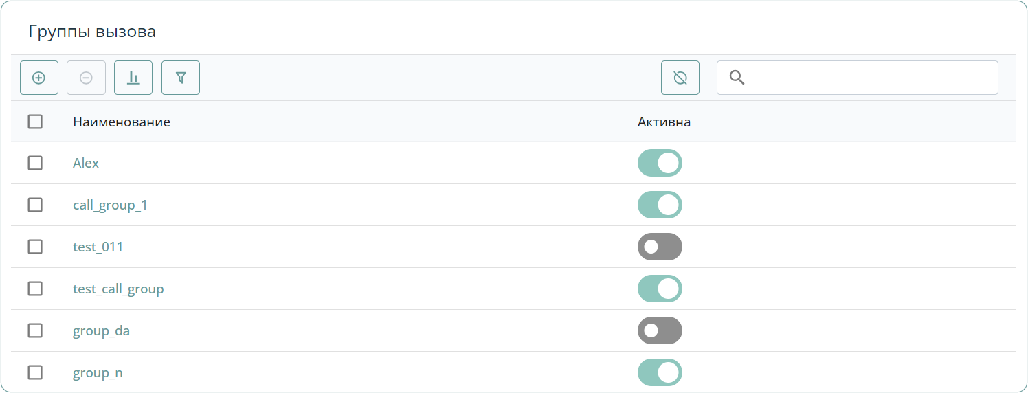 Группы вызова предназначены для корректной работы групповых телефонных сервисов, таких как групповой вызов, очередь вызовов, перехват вызова.