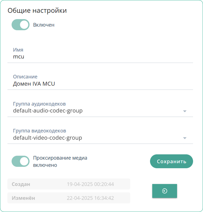 переключатель Проксирование медиа включено: настроить проксирование медиатрафика в звонках (проксирование медиатрафика в звонках по умолчанию включено)