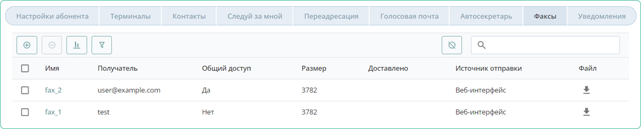Возможность обмениваться факсами настраивается персонально для абонента.