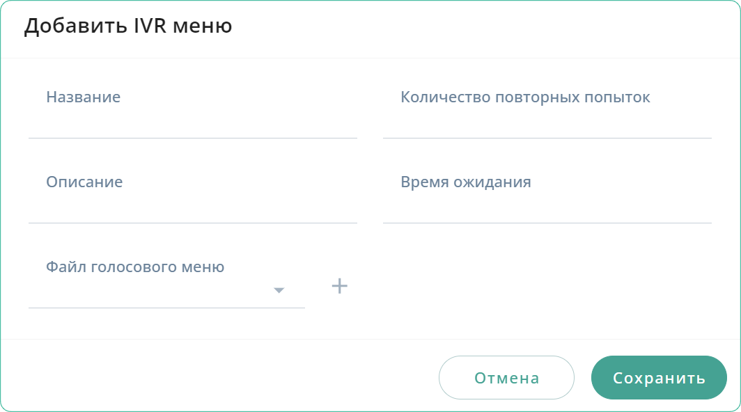 1. раздел Сервисы → вкладка IVR → нажать кнопку Кнопка Добавить → окно Добавить IVR меню