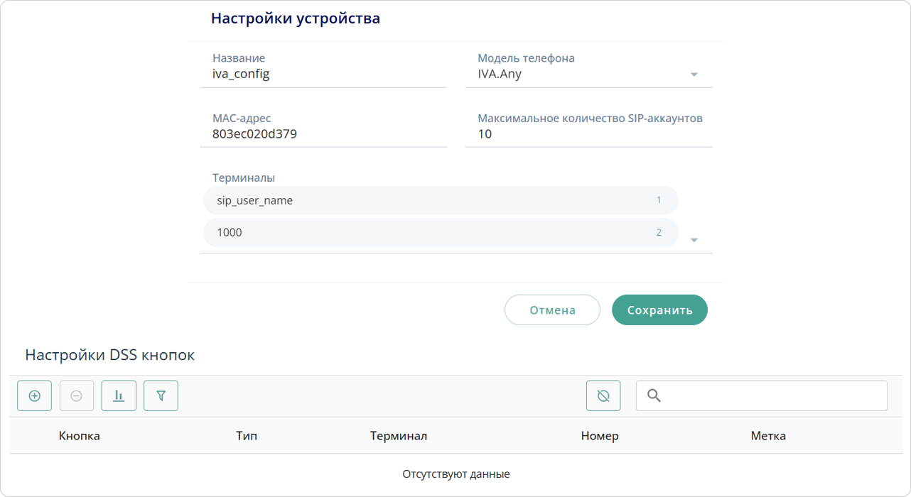 При подключении IP-телефона к серверу телефонии IVA CS произойдет автоматическая настройка параметров конфигурации данного аппарата.