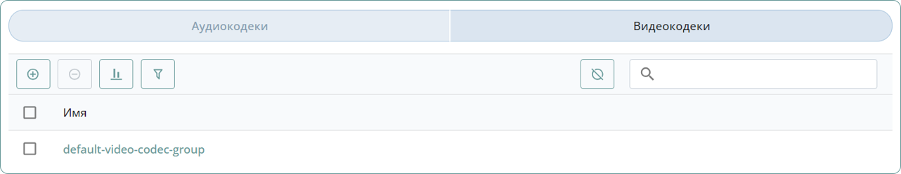 Созданная группа кодеков отобразится в общем списке в соответствующей вкладке: Аудиокодеки или Видеокодеки.