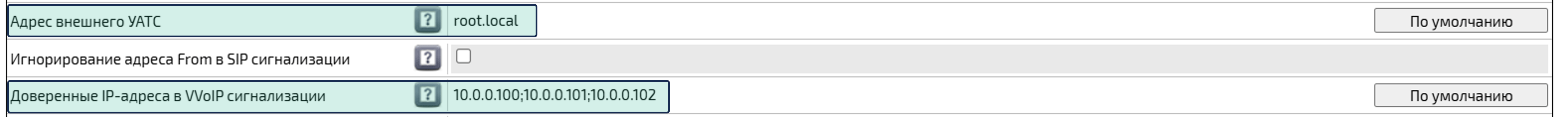 поле Доверенные IP-адреса в VVoIP сигнализации: указать подсети в которой находятся хосты сервера телефонии IVA CS (IP-адреса хостов IVA CS)