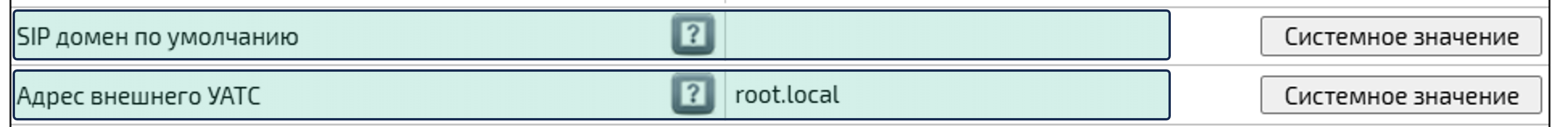 поле Адрес внешнего УАТС: родительский домен сервера телефонии IVA CS