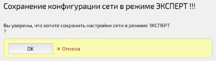 При появлении окна Сохранение конфигурации сети в режиме ЭКСПЕРТ !!!, для применения изменений необходимо нажать кнопку OK