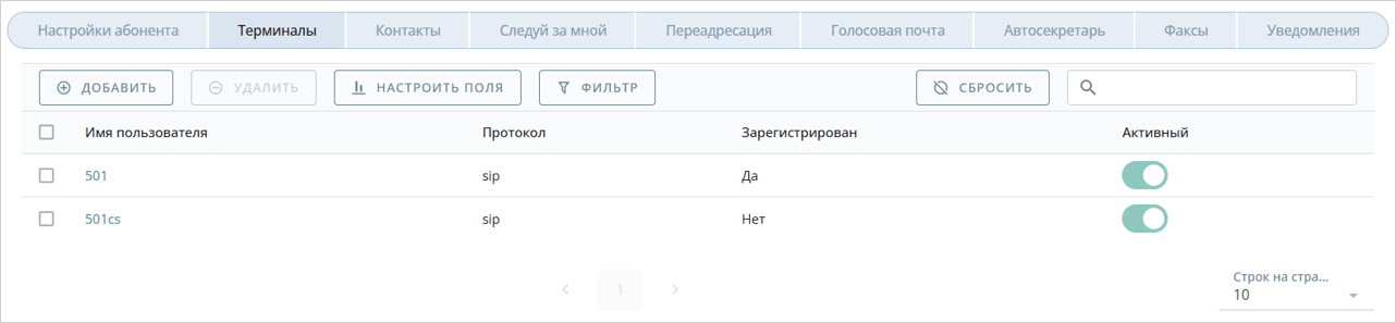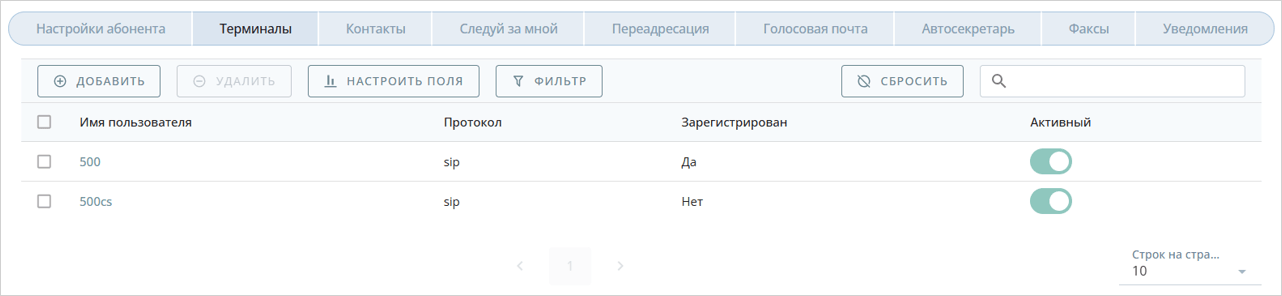 Необходимо создать двух абонентов с номерами 500 и 501.