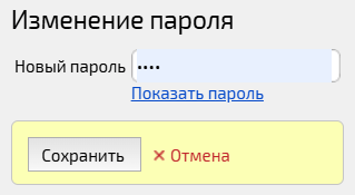 окно Изменение пароля: в поле Новый пароль ввести новый пароль и нажать кнопку Сохранить