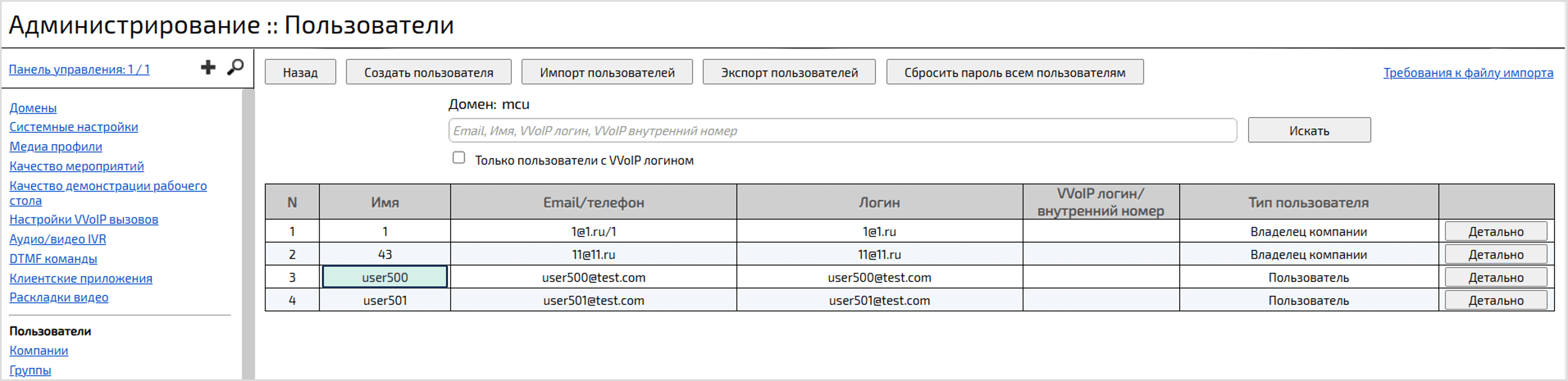 перейти в раздел Пользователи → выбрать домен и нажать кнопку Список пользователей