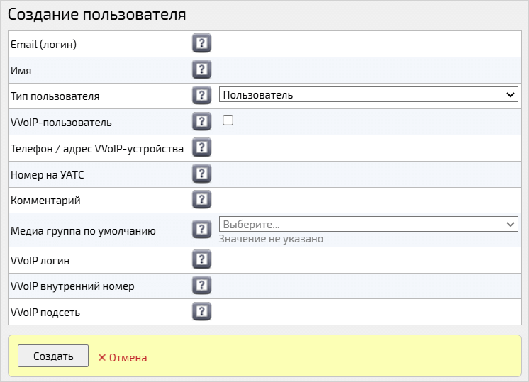 нажать кнопку Создать пользователя → окно Создание пользователя: