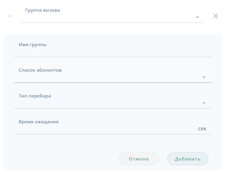 Будет создана новая группа вызова, доступная для выбора в качестве параметра в поле Группа вызова при настройке сервиса очереди вызова.