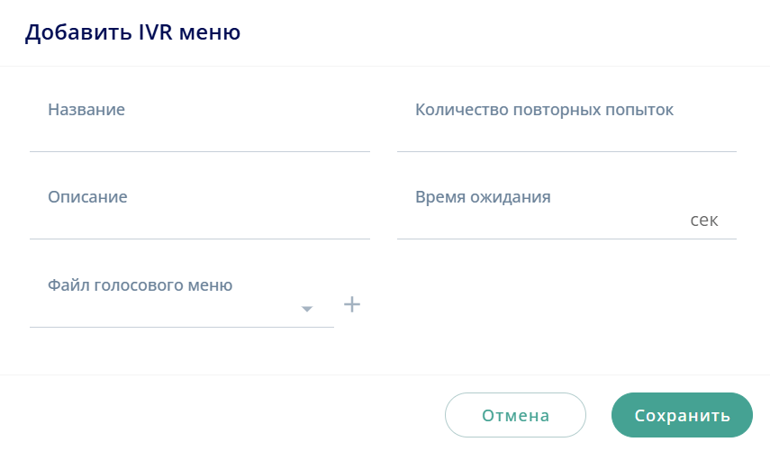 1. раздел Сервисы → вкладка IVR → нажать кнопку Кнопка Добавить → окно Добавить IVR меню