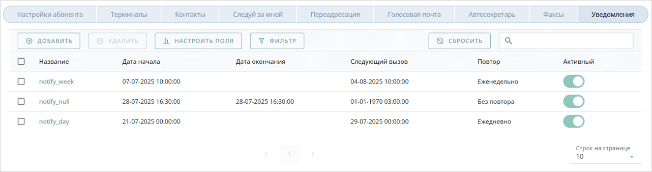 Сервис Уведомления позволяет получать входящие вызовы на номер абонента в заданное время в соответствии с указанным расписанием.