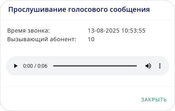окно Прослушивание голосового сообщения
