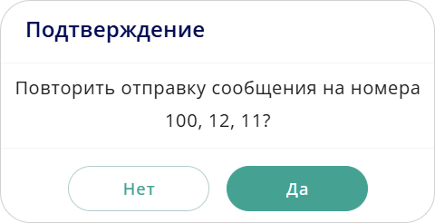и подтвердить повторную отправку сообщения на указанные номера -
