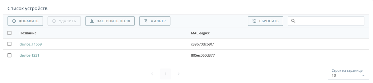 поле MAC-адрес: ввести MAC-адрес устройства (в формате: