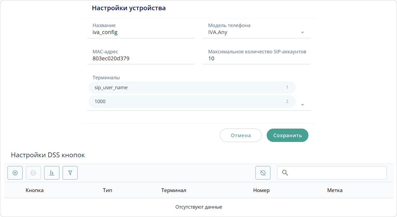 В настройках устройства можно сконфигурировать DSS-кнопки (функциональные клавиши, доступные для нажатия на корпусе / экране устройства), которые будут использоваться на IP-телефонах и прочих абонентских устройствах.