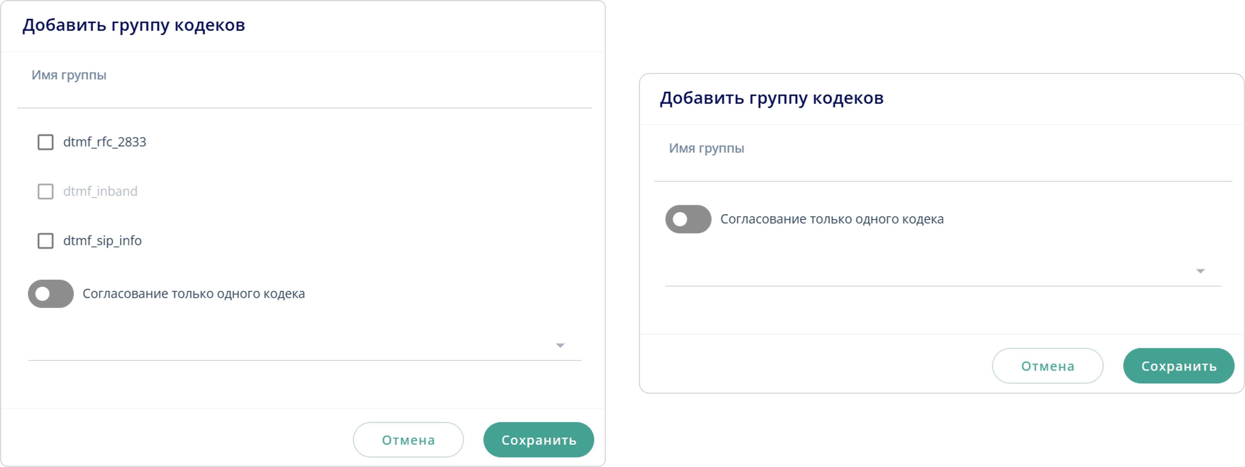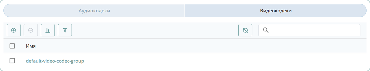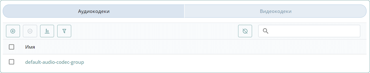Созданная группа кодеков отобразится в общем списке в соответствующей вкладке: Аудиокодеки или Видеокодеки.