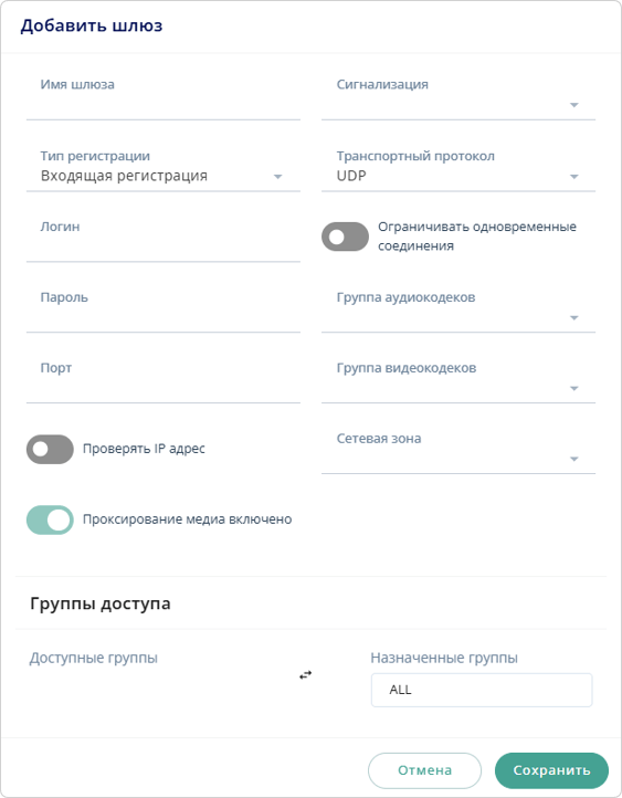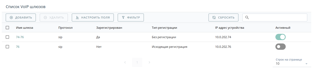Новый шлюз будет добавлен в список VoIP шлюзов.