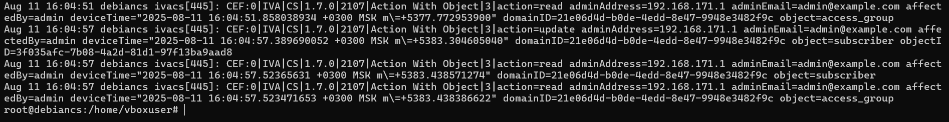 Лог аудита сохраняется в формате .CEF