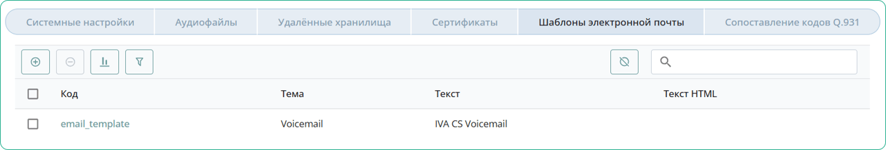 Во вкладке Шаблоны электронной почты можно создать шаблоны писем, которые затем будут отправляться пользователям на электронную почту при пропущенных звонках.