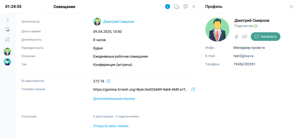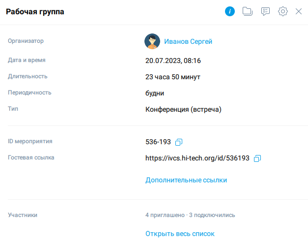 | При изменении ссылки для подключения или ID мероприятия, вход в мероприятия по старой ссылке / ID будет невозможен |