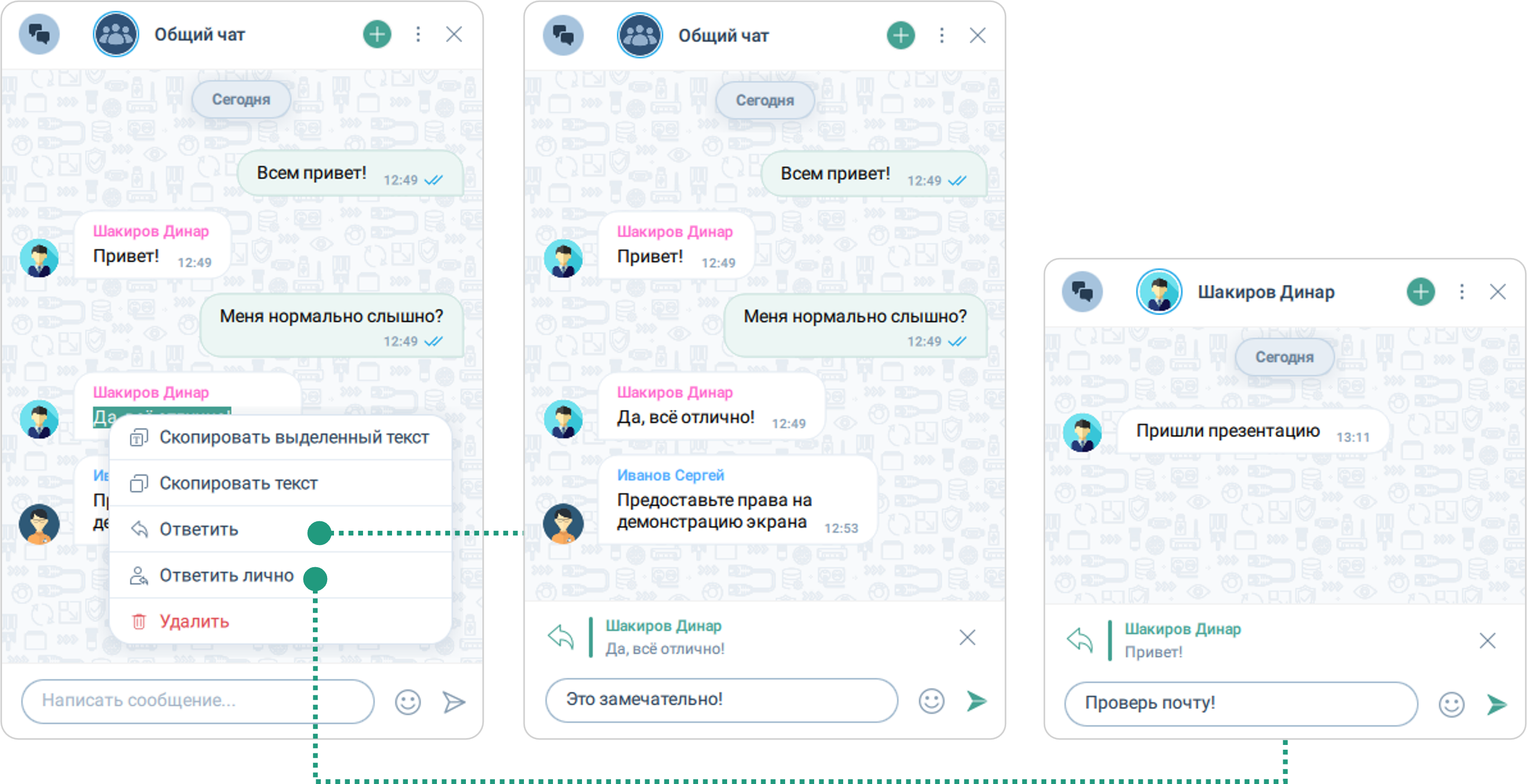 Ответ на сообщение в чате
