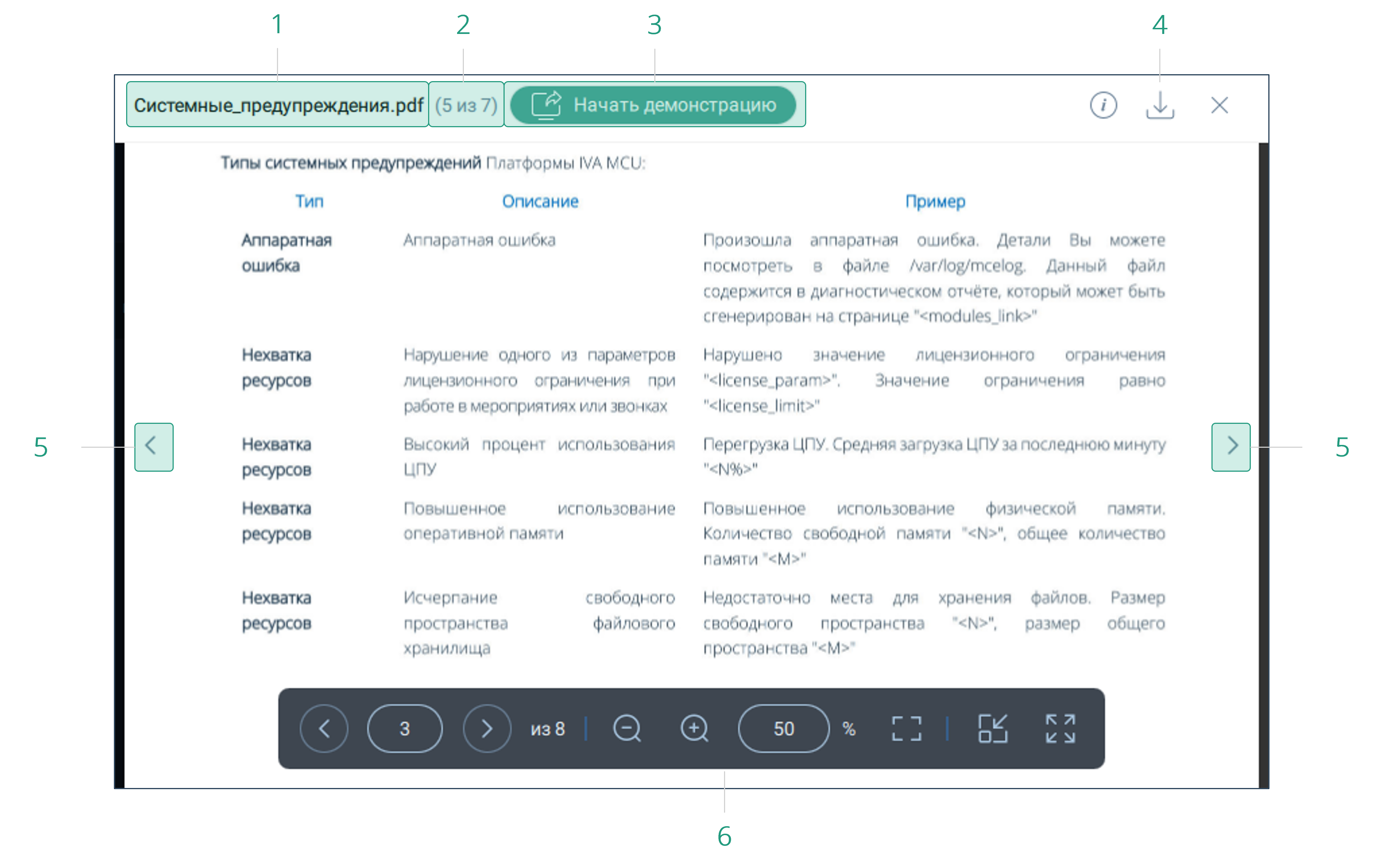 Для демонстрации документов рекомендуется использовать файлы в формате .pdf. Документы других просматриваемых форматов могут отображаться некорректно