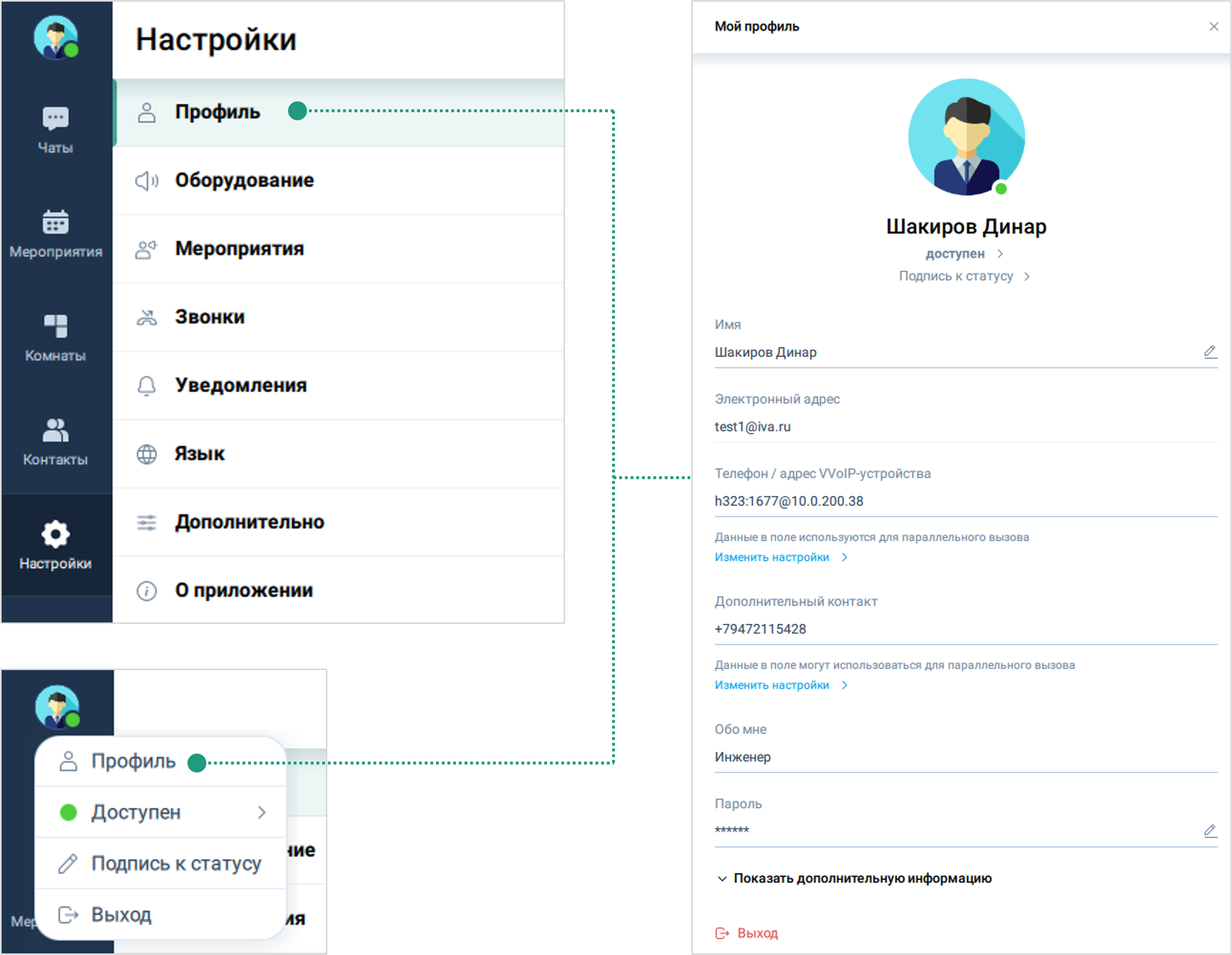 | При изменении персональных данных пользователем происходит автоматическое изменение этих данных и в других клиентских приложениях Платформы IVA MCU |