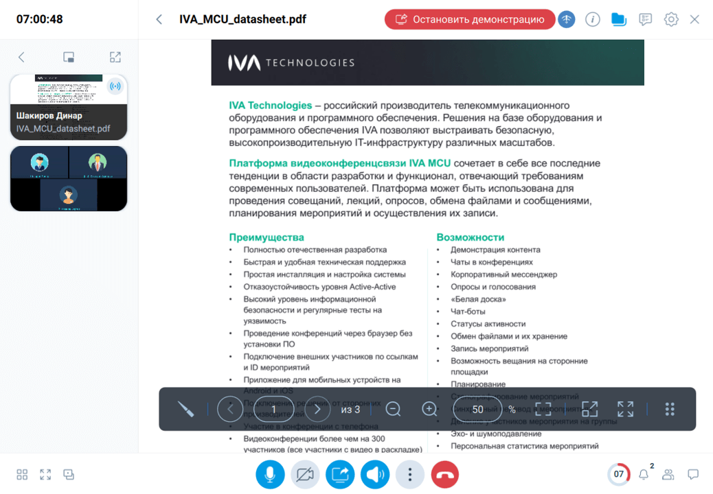 | Удаленное управление рабочим столом недоступно в IVA WEB и IVA Connect Mobile, а также в случае, когда владелец демонстрации пользуется версией Приложения для macOS |
