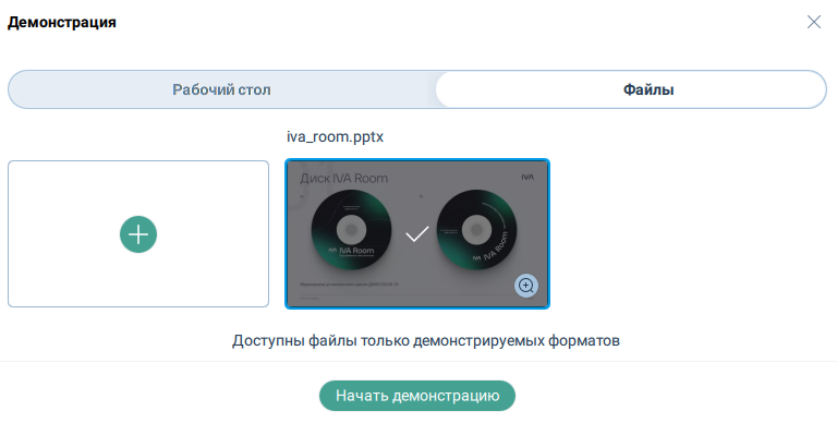 Чтобы начать демонстрацию еще не загруженных в мероприятие файлов, необходимо: