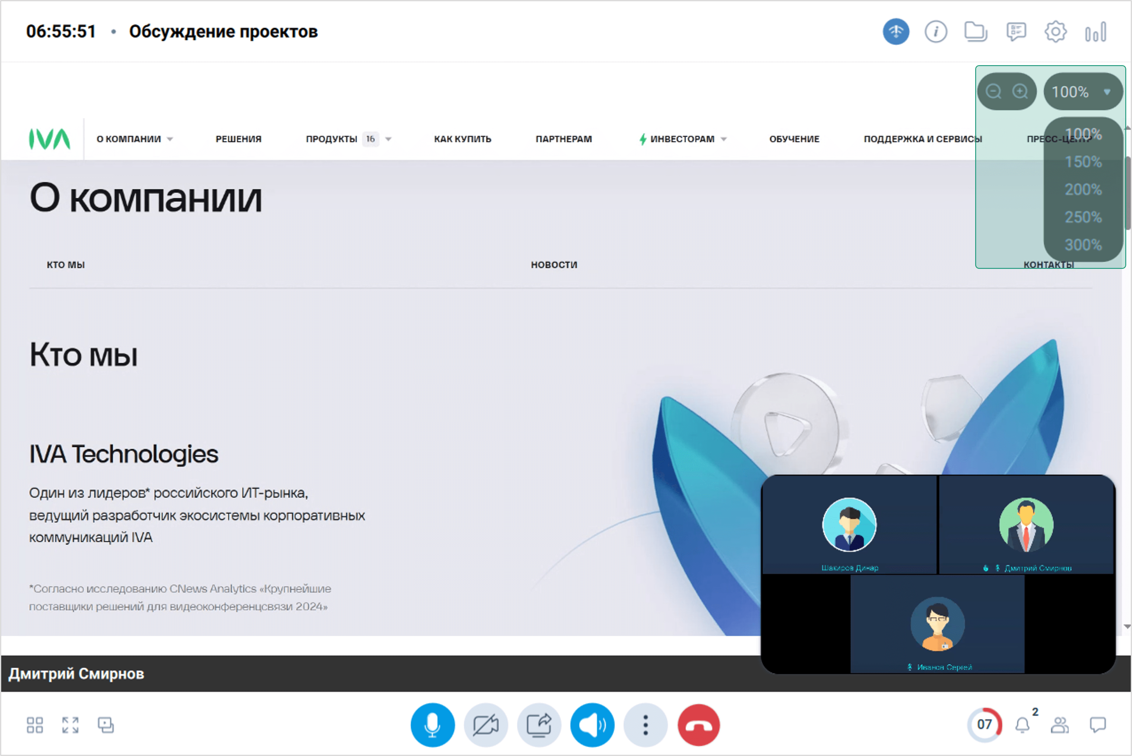 При просмотре демонстрации участники мероприятия могут масштабировать демонстрируемый контент.