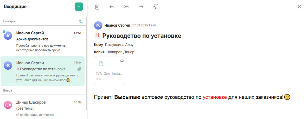 | Подробнее про работу с почтой можно ознакомиться в официальной документации на почтовый клиент |