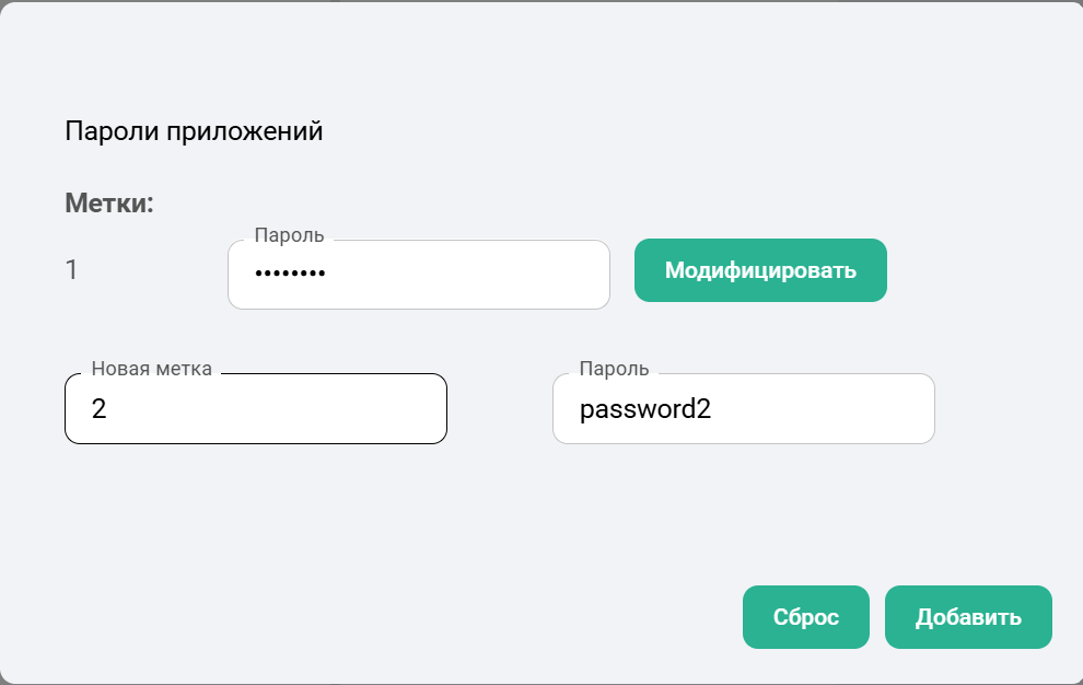 Кроме основного пароля можно добавить пароли приложений с метками, для этого нужно:-