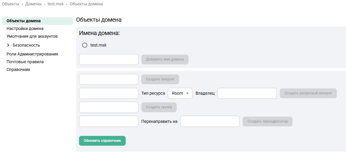 На странице Объекты домена можно: