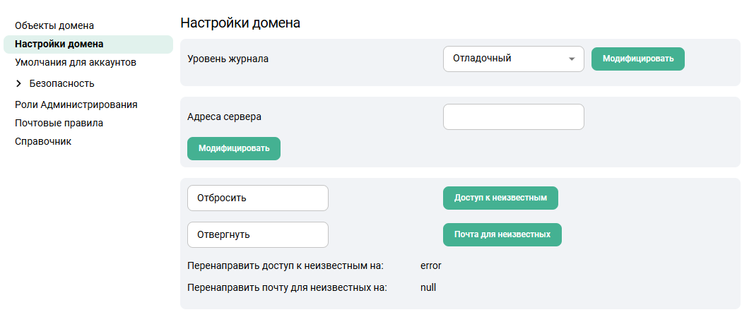 Подробнее о настраиваемых параметрах можно посмотреть в разделе Настройки домена для умолчаний доменов и в разделе Настройки аккаунта для умолчаний аккаунтов.