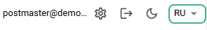 В левом нижнем углу находятся кнопки выхода, смены темы (светлая и темная), настройка языка интерфейса, а также настройки входа в интерфейс администратора по одноразовому паролю (TOTP).
