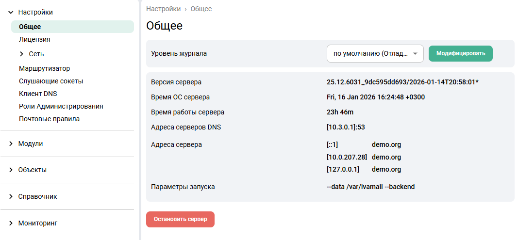 Веб-интерфейс панели администратора позволяет добавлять новые объекты, менять установки и настройки сервера, его объектов и различных модулей, а также производить мониторинг работы сервера и его модулей.