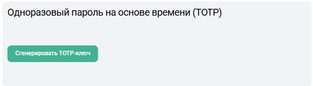 в разделе Одноразовый пароль на основе времени (TOTP) нажать Сгенерировать ТОТР-ключ;